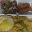 Java rice,litson kawali,chicharon bulaklak,lumpia,fried egg