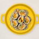 For reference: Kimbab filled with seasoned rice, fresh vegetables, and savory tuna wrapped in seaweed.