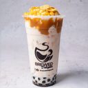Milk tea with overloaded toppings with pearls, crystals & creamcheese included