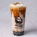 Choco milk tea that comes with pearl, cream cheese and choco chips