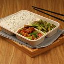 Chicken, eggplant, carrots, leeks, ginger, garlic, Chinese herbs, oyster sauce, steamed rice