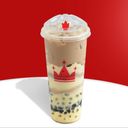 Features rich, creamy milk tea with a smooth, sweet flavor, complemented by chewy, sweet tapioca pearls that add a satisfying texture.