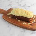 One whole loaf of our perfectly-spiced, super moist Carrot Loaf with real grated Carrots topped with our signature Cream Cheese frosting and drizzled with sliced Almonds.