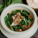 For reference: A savory dish featuring leafy greens and a flavorful, hearty base.