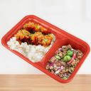 Get 3 Viand Bento Box of Honeylime Chicken Tenders with White Rice, Japchae Noodles, and Roast Beef with Gravy