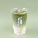 22oz - Iced premium ceremonial grade matcha and milk, layered with homemade white chocolate sauce