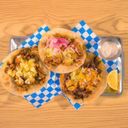 3pcs Carne Asada, Shrimp, Choice of Pork Carnitas or Pollo Asado