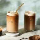 a refreshing beverage made with espresso, cold milk, and ice.