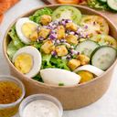 Crispy bacon with fresh greens, cucumber, tomato, and egg. Customize it with your favorite vinaigrette or dressing.