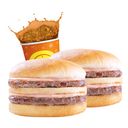 The juicy, smoky, and mildly spicy Buy1Take1 Beef Hungarian Sandwich with Mayo and Catsup Sauce and your Refreshing Minute Burger drink.