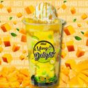 For reference: A sweet and refreshing mango-infused drink, bursting with tropical flavors in every sip.