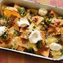 Crispy tortilla chips loaded with seasoned meat, parmesan, mozzarella, cheddar cheese & topped with fresh bell peppers