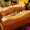 Imported Hungarian Sausage, Egg with Corn, Parsley leaves toppings and the Sauces Mayonnaise and Siracha.