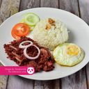 Plain Rice, Corn & Carrots, Ham and Bacon, Scrambled Eggs