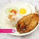 Plain Rice, Corn & Carrots, Boneless Fried Bangus, Scrambled Eggs, Vinegar