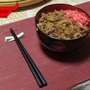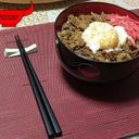 Rice topped with beef slices