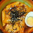 For reference: Spicy rice cakes stir-fried with chewy noodles in a savory sauce.
