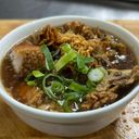 For reference: A rich, savory stew with tender meat, served with rice and flavorful broth.
