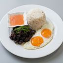 Chorizo, Bacon, 1 sunny side up, rice