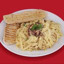 Cream-based penne pasta with bacon infused with truffle paste and oil. Served with Ciabatta sticks.