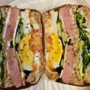 Wheat bread, ham, egg, cheese, lettuce, cucumber, tomatoes