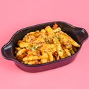 Pasta tossed with chicken in slightly spicy creamy white sauce for sharing