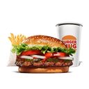 100% flame-grilled beef topped with juicy tomatoes, fresh lettuce, creamy mayonnaise, ketchup, crunchy pickles, and sliced white onions on a fluffy glazed sesame seed bun. Comes with a side & drink of your choice.