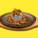 Sizzling hotdog mixed with ketchup, white onion and special sauce