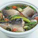 A classic tamarind based soup with boneless bangus, eggplant, onions, tomato, string beans, okra, raddish, and kangkong.