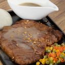 Cebu's bestselling, pork steak, seasoned in our special marinade, charcoal-grilled, topped with our signature house gravy & served with 2