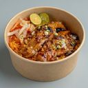 more like rice with a little pork. i even ordered the full serving but very disappointing.