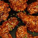 Korean bulgogi drummettes and wingettes, topped with Ottogi sesame seeds