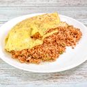 For reference: Spicy omelette served over rice, combining flavors of chili and savory ingredients.