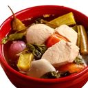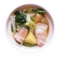 A hearty Filipino boiled pork soup made by simmering pork until tender in a clear broth. It is commonly prepared with vegetables such as cabbage, corn, potatoes, and pechay, resulting in a mild, savory dish that is perfect for cold or rainy days.