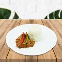 For reference: A hearty pork humba served with rice, offering rich and savory flavors.