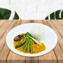 Beef Meat & Tripe stewed in thick savory peanut sauce and vegetables served.