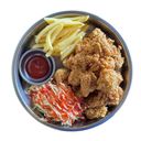 250g. Boneless original crispy chicken serve with potato fries and shredded vegetables.