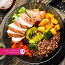Delicious chicken buddha bowl with fresh veggies & tangy sauce
