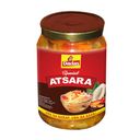 For reference: A jar of traditional Filipino pickled vegetables, known for its tangy and slightly sweet flavor, commonly used as a condiment.