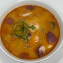 hot and sour soup, with mushrooms, and other vegetables, shrimp, and squid