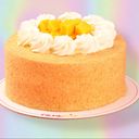 Layers of fluffy white chiffon with light mocha cream filling and topped with sea salted honey crunch