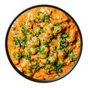 For reference: Creamy tomato sauce with tender chicken, aromatic spices, and served with naan or rice.