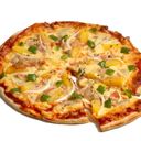 128 Cal, Smoked bacon, pineapple, mushroom, bell pepper. White onions, cheddar, mozzarella cheese & wheat pizza crust