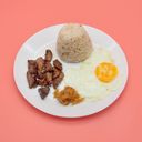 Glass noodles with thick sauce and topped with eggs and green onions.