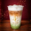 Earthy matcha latte enriched with a shot of espresso.