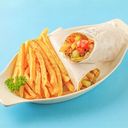 For reference: Crispy fries topped with savory seasoned chicken, onions, and a tangy sauce.