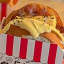 Pure beef thick patty on pepper rice, served with cured yolk and a side of savory gravy.