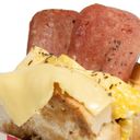 Scrambled egg and house specialty sauce , premium cheese and ham