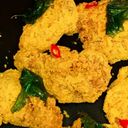 Fried Drummettes and Wingettes, Salted Egg Powder Topped with Fried Basil and Chili