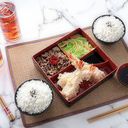 Prawn Tempura Bento Served With Red Iced Tea And Choice Of Sides. Vegetable Misono May Be Replaced With Corn & Mushroom Depending On Availability.